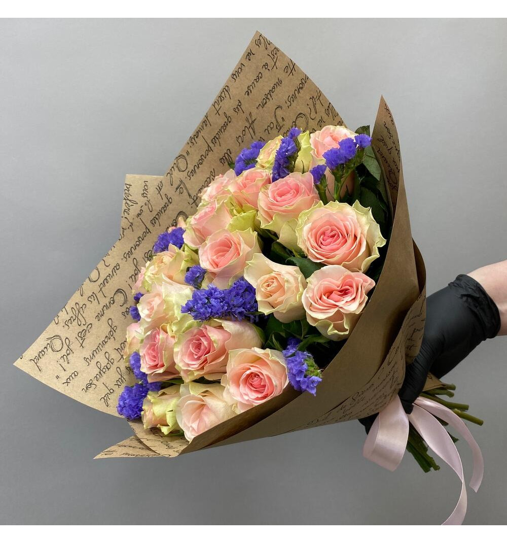 Монобукет из розы и статицы - это элегантный и стильный композиционный выбор. Роза желто-розового цвета символизирует радость, дружбу и теплоту чувств, а фиолетовая статица добавляет нотку загадочности и романтики. Эта комбинация создает гармоничное сочетание цветов, которое отлично подходит для выражения глубоких эмоций и чувств. Монобукет из розы Top Gear и статицы станет прекрасным подарком для особого человека в день рождения, юбилей, свадьбу или любой другой праздник. Он подчеркнет важность момента и добавит ярких красок в особые дни.